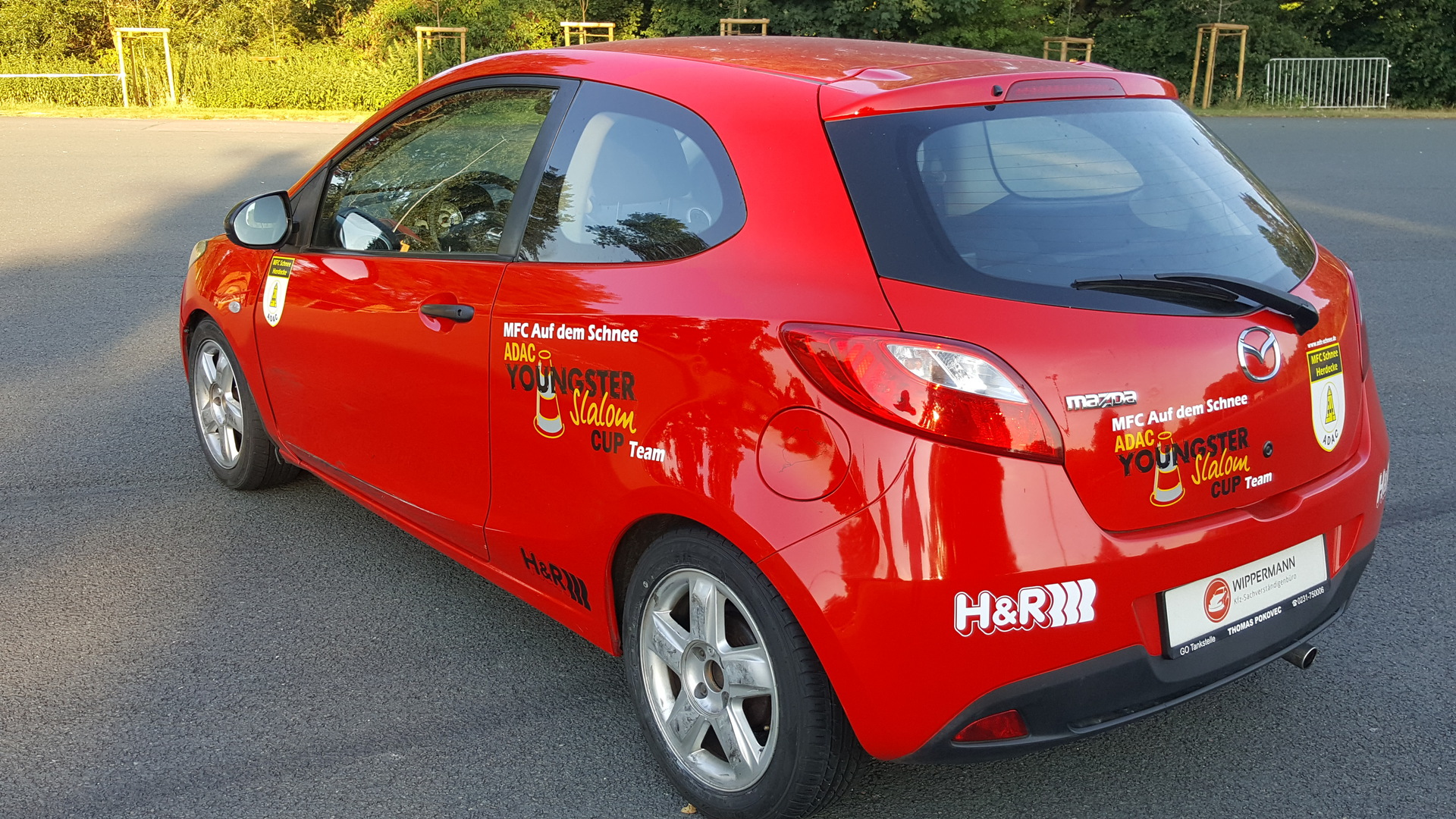 Ende 2016 haben wir einen Mazda 2, 1400 ccm, 75 PS (siehe Foto) angeschafft, wie er bis Ende 2021 vom ADAC Westfalen eingesetzt wurde und für den Slalomsport mit entsprechender Sicherheitsausstattung ausgerüstet und bereiten damit unsere Jugendlichen auf die Teilnahme am Cup vor.